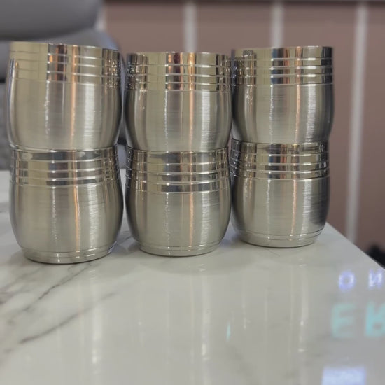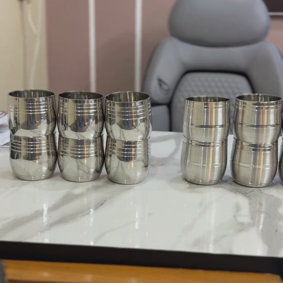 Sturdy, heavy Steel Glasses, 1 piece weighs around 180 grams.